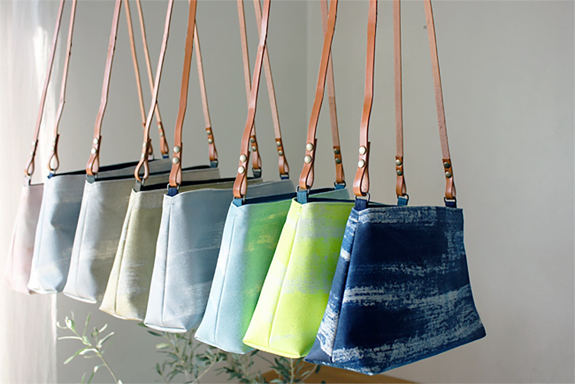 刷毛染友禅の技法を応用して、帆布をハケで一つ一つ染めています。